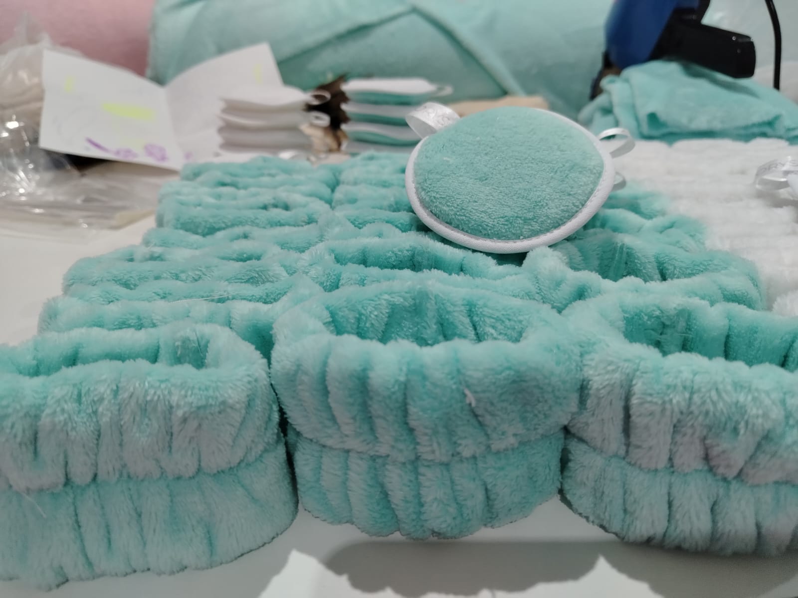 hermosas muñequeras antiderrames elaboradas en tela peluche y elastico super absorbente, viene en par, colores rosa bb, rosa viejo, lila, verde, beige, blanco.